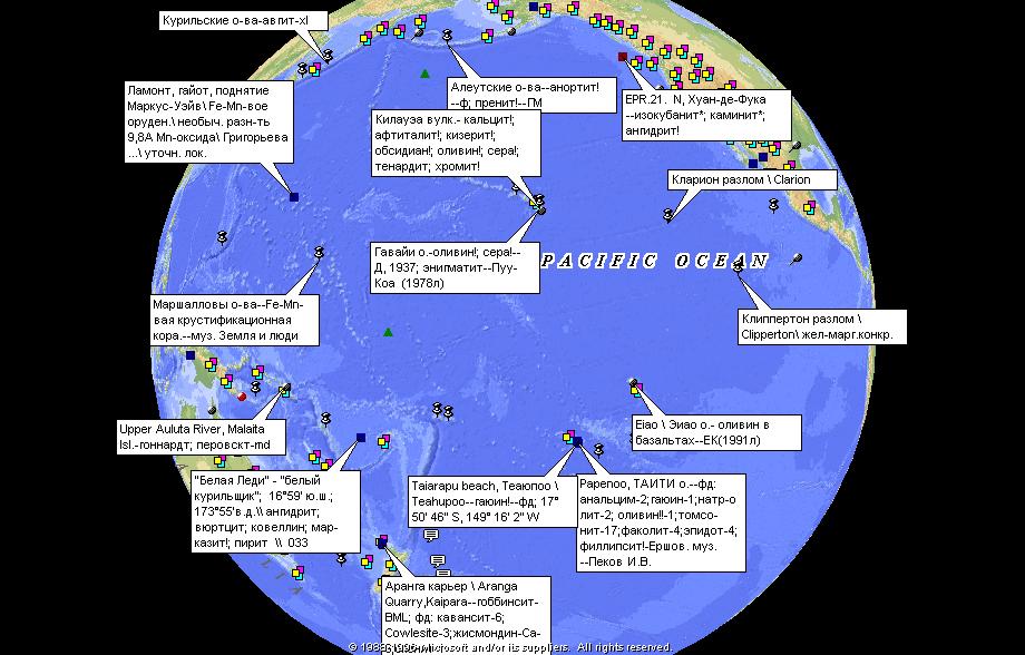 Тихий океан и прилегаюшие территории.Минералогические находки (примеры). Составил: А. Евсеев.