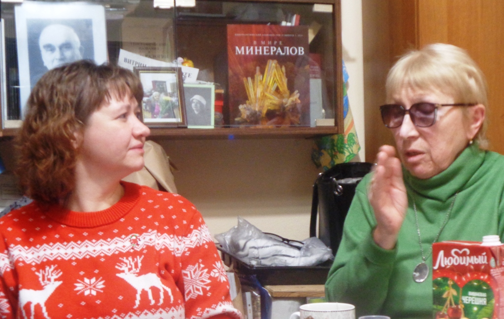 Т.Ю Должанская (слева) и Л. Иванова из музея Иркутского политеха . Мин. музей МГРИ. 2025.10.30. Фото: А. Евсеев.
