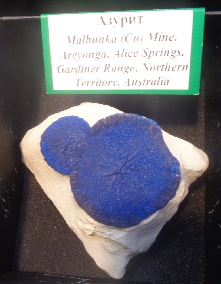 Азурит. Рубцовское м-ние, Алтайский край, Россия Образец: "Русские минералы". «Ивент-холл Даниловский». Фото: А. Евсеев, 2025.10.04