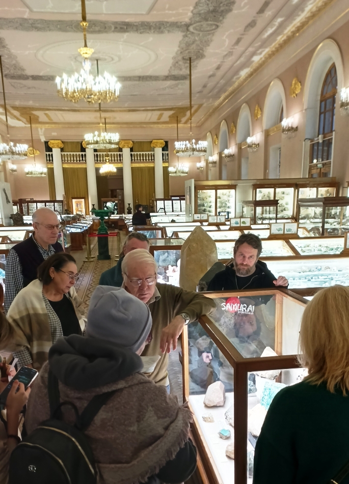 Участники обзорной экскурсия "Минералы островов в экспозиции Мин. музея им. А.Е. Ферсмана РАН." Клуб друзей минералогии. 2026.01.30. Фото получено от Ольги Полянцевой.