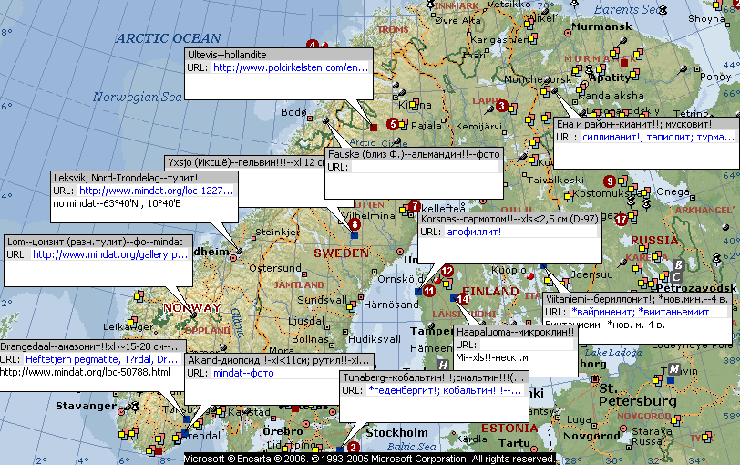 СЗ Европа. Минералогические находки (примеры ). Составил: А. Евсеев