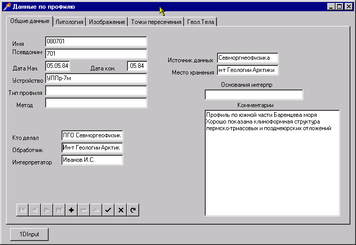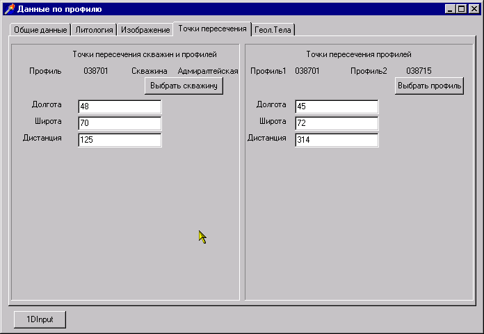 Модуль ввода первичной информации по профилям содержит следующие закладки: