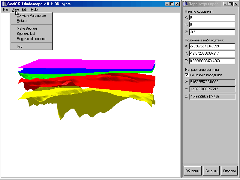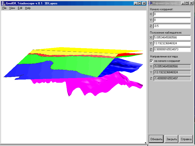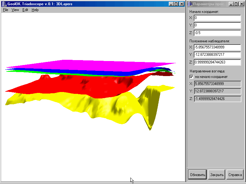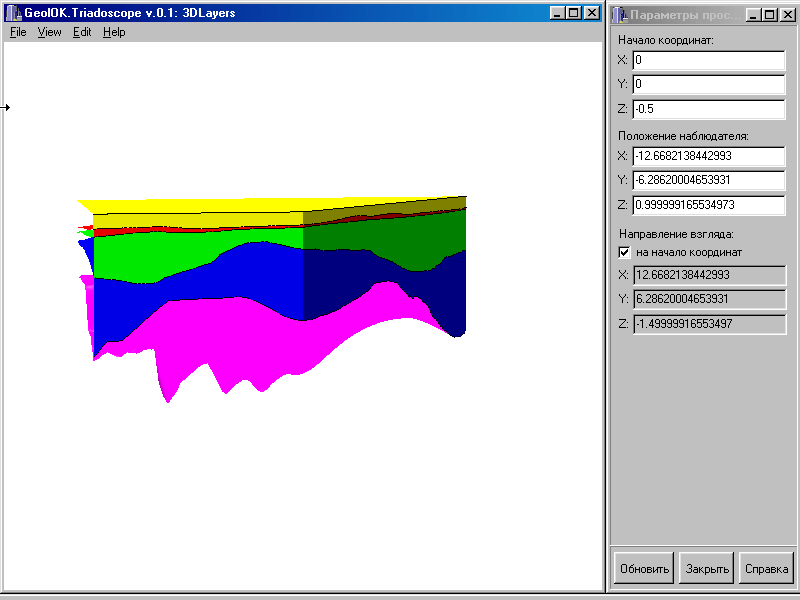 В течение первого года основное внимание было сосредоточено на разработке модулей осуществляющих “невидимую глазу” техническую работу, только при наличии которых возможно перейти к выполнению смысловой части проекта. В частности была разработана структура баз данных первичной информации и трехмерной геометрии, написаны основные части модулей ввода первичной информации и просмотра трехмерной структуры. Модуль интерполяции на