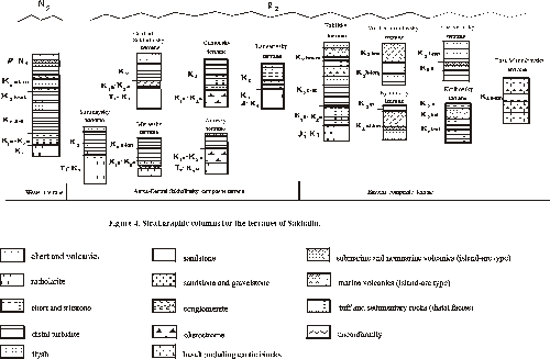 Triassic-Lower Cretaceous formations are interpreted as a part of ancient oceanic plate, whereas Upper Cretaceous formations have been terrigenous sediments of the marginal basin near continental slope.