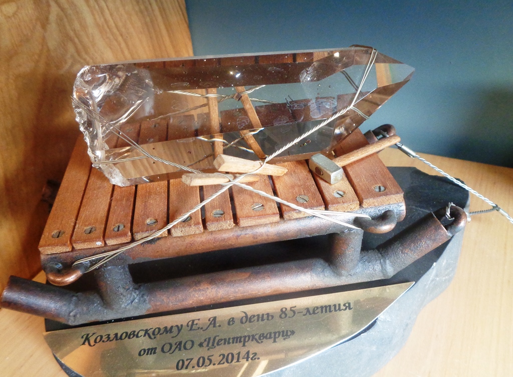 Подарок Е. А. Козловскому (министру геологии СССР) в день 85-летия от ОАО "Центркварц". 07.05. 2014 г. Мин. музей МГРИ. Фото: А. Евсеев.
