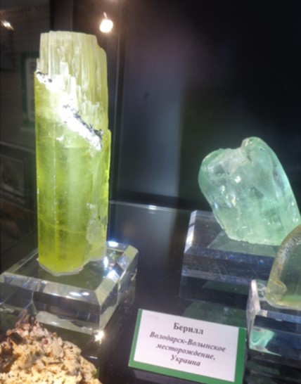 Берилл. Володарск-Волынское м-ние, Украина. Образцы: "Русские минералы". «Ивент-холл Даниловский». Фото: А. Евсеев, 2025.10.04 \ https://geo.web.ru/druza/m-Be_6_Danil-ih_251004.jpg