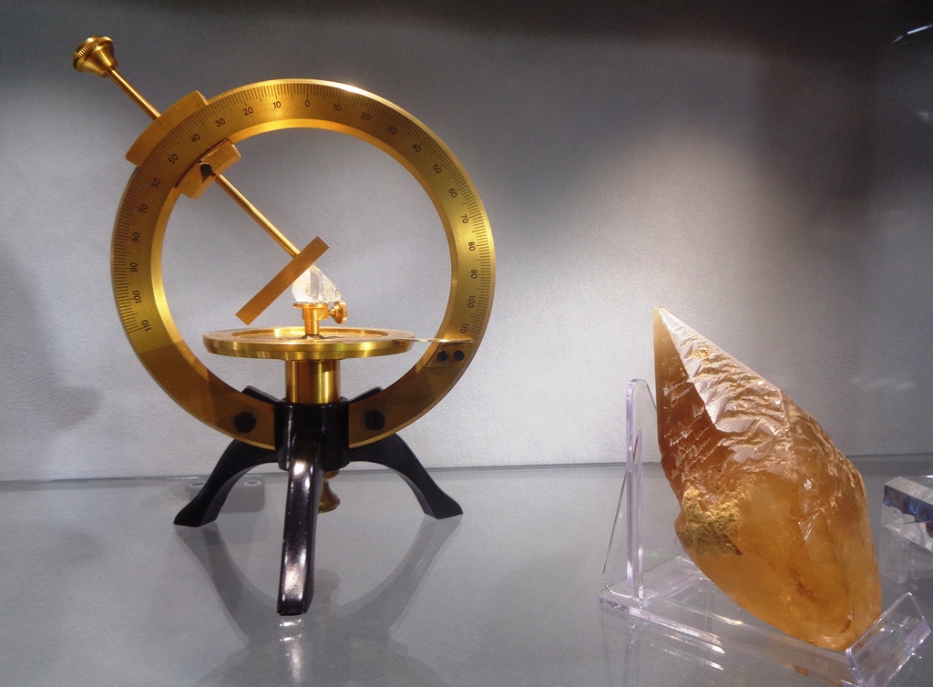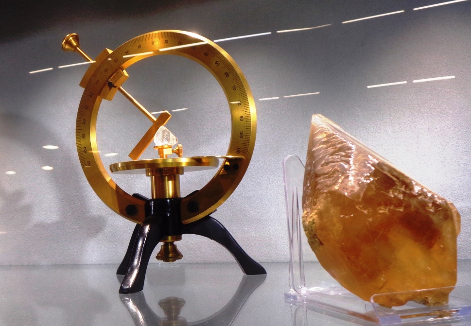 Гониометр и кристалл кальцита . Образец: "Русские минералы". «Ивент-холл Даниловский». Фото: А. Евсеев, 2025.10.04