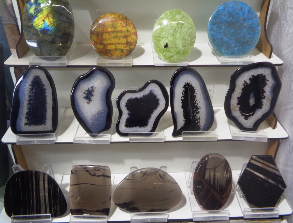 1. Сердолик. Бразилия. 2.Агат. Бразилия. «Ивент-холл Даниловский». Фото: А. Евсеев, 2026.04.04