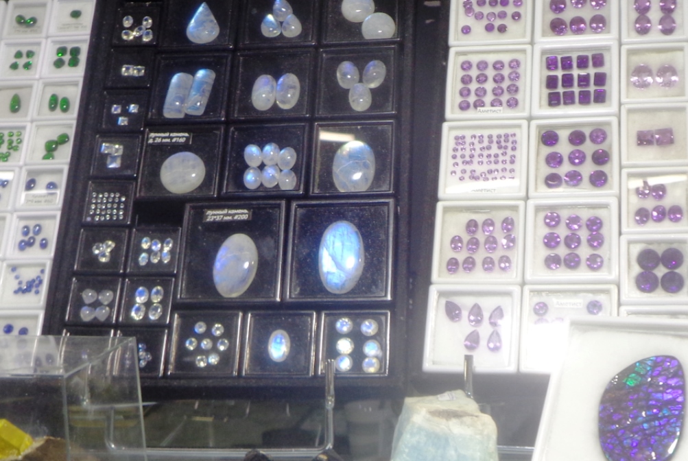 Лунный камень (кабошоны) и другие самоцветы. . «Ивент-холл Даниловский». Фото: А. Евсеев, 2026.04.05