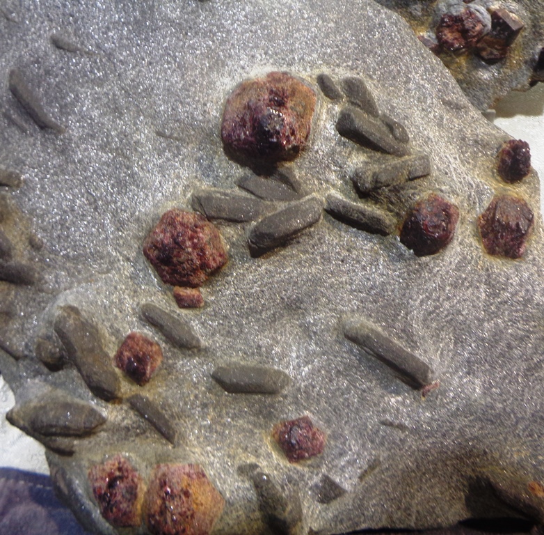 Альмандин, ставролит в породе. Россия. «Ивент-холл Даниловский». Фото: А. Евсеев, 2026.04.05